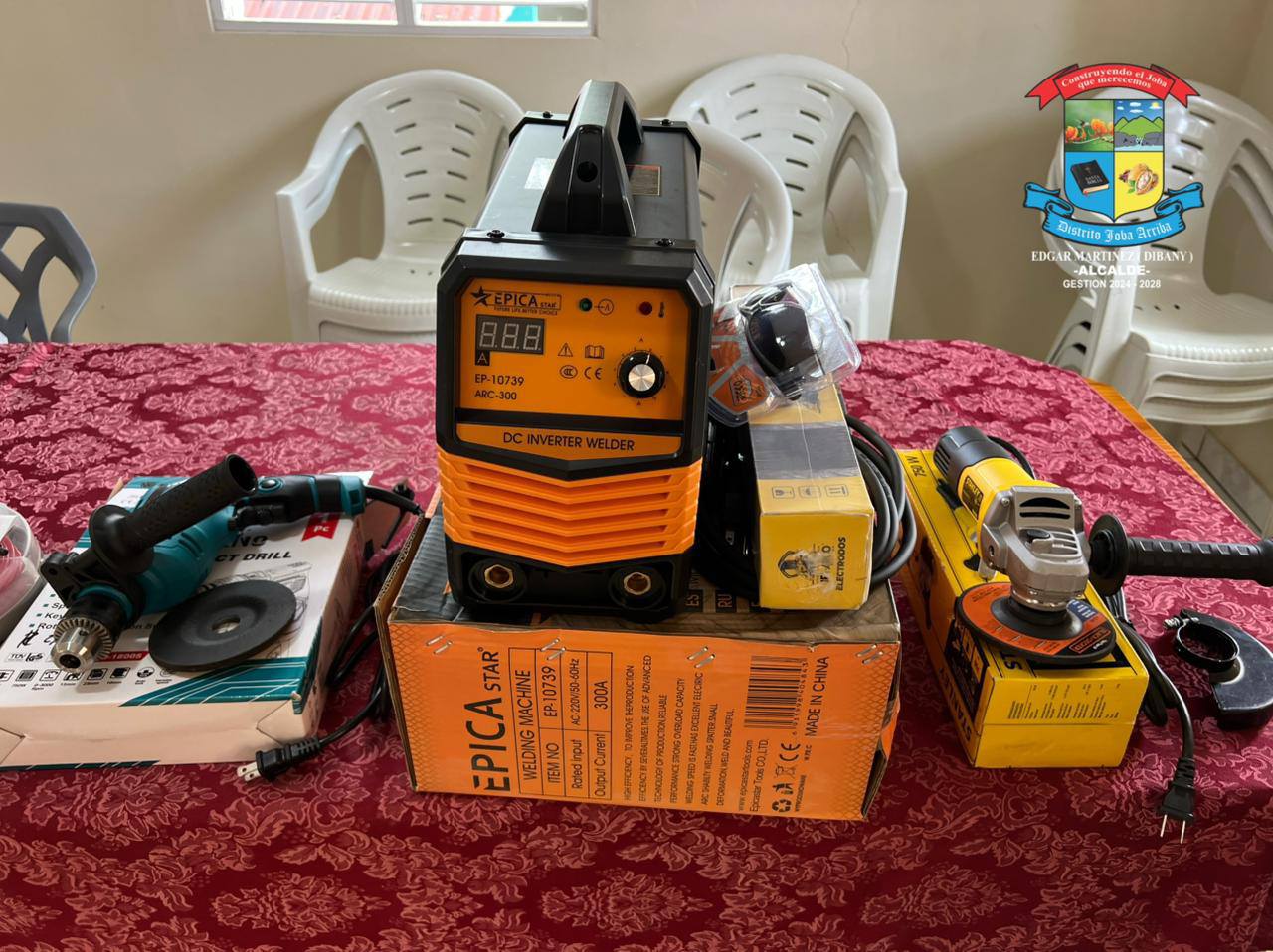 El alcalde Dibany Martínez continúa equipando el ayuntamiento con herramientas, con la intención de hacer más eficientes los trabajos. Gracias a este equipamiento, nuestras brigadas de trabajo garantizan una mejor calidad en cada labor que realizan. Durante esta gestión hemos sido testigos de la cantidad de nuevos equipos que ha adquirido la alcaldía; en esta ocasión, una máquina de soldar, una pulidora y un taladro.”