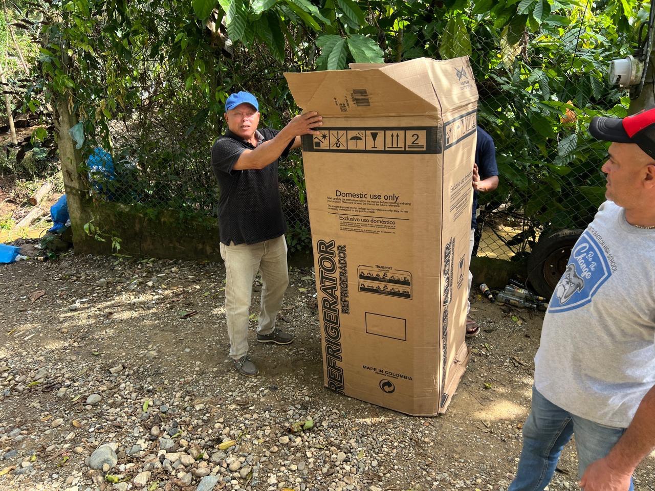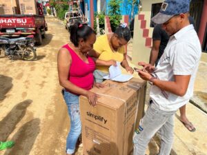 El alcalde del distrito de Joba Arriba hace entrega de enseres, kits de limpieza y kits de comida en muestra comunidad.